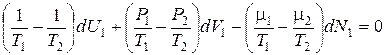 Так как приращения dU 1, dV 1и dN 1произвольны, условие равновесия подсистем имеют вид:
