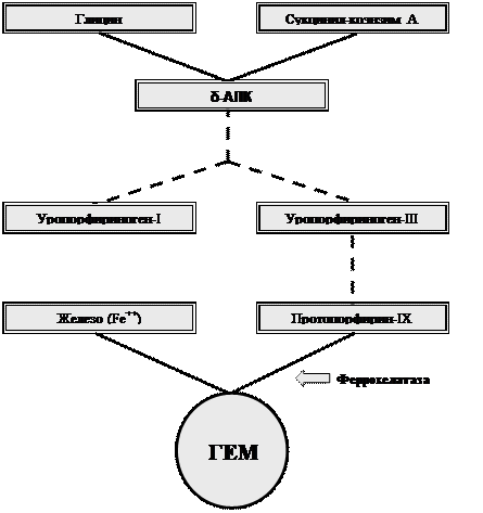 Создайте схему биосинтеза гема в точности соответствующую образцу.