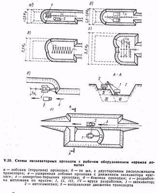 Средний угол поворота платформы экскаватора для погрузки грунта в транспортные средства, особенно при работе в узких забоях, может достичь 180°, что увеличивает время рабочего цикла и снижает производительность экскаватора. Поэтому способ лобового забоя используют ограниченно.