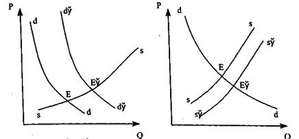 Как видно из рисунков, уравновешивающая функция цены обнаруживает свое влияние как через спрос, при неизменном предложении, так и через предложение при неизменном спросе (см. подробно рис.).