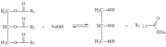 Жиры – это сложные эфиры глицерина и высших (с большим числом атомов C) карбоновых кислот. Жидкие жиры содержат остатки непредельных кислот, твердые – только предельных. В присутствии щелочи жиры омыляются (гидролизуются) – превращаются в натриевые или калиевые соли высших карбоновых кислот (мыла).