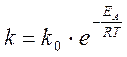 Где EA – т.н. энергия активации (та кинетическая энергия, которой должна обладать молекула, чтобы, столкнувшись с другой, она не просто отлетела, а прореагировала), R – универсальная газовая постоянная, T – температура (в K).