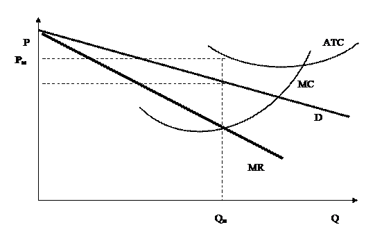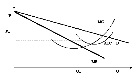 Кривая спроса не абсолютно эластична, но достаточно сильно наклонена. Кривые издержек определяются производственной функцией и не зависят от типа рынка.