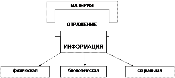 Взаимосвязь движения (потоков информации) с материей (структурами) приводит к понятию «отражения», т.е. к свойству материи запечатлевать и сохранять в своей структуре следы воздействия другой системы. Отражение - одно из свойств материи (пространство, время, движение), причём оно развивается вместе с развитием материи. По А. Урсулу, информация - отраженное разнообразие реального мира и чем разнообразнее система, тем более адекватно отображает она мир. Составляющие информации представлены на рис 1.2