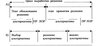 Рис 1.7 Цикл выработки решения а) и цикл выбора альтернативы б)