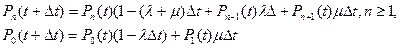 3) вероятности нахождения в системе (n + 1) заявки в момент t, умноженной на вероятность ухода одной заявки, при условии не поступления ни одной заявки.