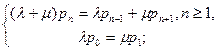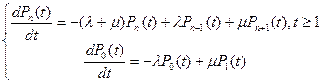 Пусть процесс обслуживания начинается при отсутствии заявок в накопителе, тогда состояние СМО описывается следующей системой уравнений: