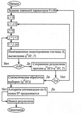 Заключим раздел представлением блок-схемы моделирующего алгоритма для решения задачи оптимизации, алгоритм построен по принципу: