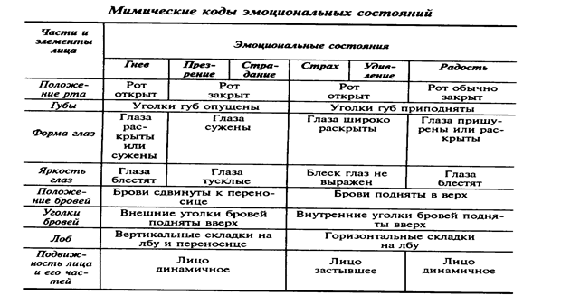 Как видим, в мимике два слоя: естественный и культурный. При этом человек склонен интерпретировать с помощью культурных семиотических кодов даже сугубо природные особенности лица.