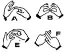 Жестовый язык глухонемых замещает обычный язык. Он состоит из единиц двух уровней членения, минимальной билатеральной единицей считается херема, психологический аналог фонемы. Он не совпадает с национальным! Так амслен (American Sign Language) близок языку глухих Франции, но не является родственным языку глухих Англии. На рисунке изображено ‘слово’ языка глухонемых, значащее ‘ученик’.