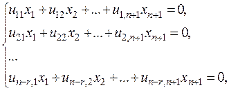Опр. 5. Множество точек M(х1,х2,...,хn+1), координаты которых удовлетворяют системе из n-r линейно независимых однородных уравнений вида: