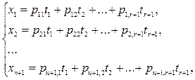 называется r-мерной плоскостью n-мерного проективного пространства RPn или коротко r-плоскостью. Ранг матрицы системы (2) равен n+l-(n-r) = г+1, значит, все её решения являются линейными комбинациями каких-нибудь независимых решений