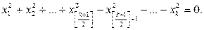 переведена в квадрику, уравнение которой в исходной однородной системе координат пространства RPn имеет один из следующих видов: