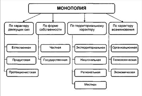 По характеру возникновения можно выделить организационную, технологическую и экономическую монополии.