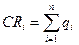 Однако в статистической практике и деятельности антимонопольных органов как в промышленно развитых странах, так и в России из всех обозначенных измерителей практическое использование ограничено только двумя из них (CR-3 и HHI). Наиболее распространенный и часто применяемый показатель для характеристики абсолютной концентрации — коэффициент рыночной концентрации (CR). Он показывает кумулированные доли признака концентрации наиболее крупных единиц и определяется как сумма рыночных долей крупнейших продавцов рынка (может измеряться в долях или в процентах