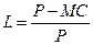 Вместе с тем индекс Лернера достаточно доступен как в плане его расчета, так и в плане экономической интерпретации полученных результатов и определяется как разница между ценой товара и предельными издержками его производства, отнесенная к цене: