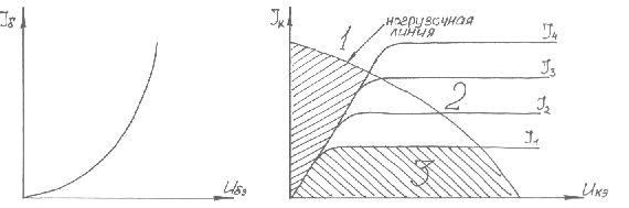 1. Область насыщения; транзистор полностью открыт и не обладает усилительными свойствами.