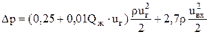 uг – скорость газов в горловине ~50–70 м/с;