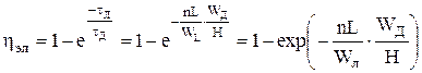 Степень улавливания пропорциональна эффективной скорости дрейфа WД, m – числу полей, длине каждого поля L и снижается с ростом скорости газа Wл и расстояния между коронирующими и осадительными электродами H. Полуэмпирическая формула для степени улавнивания в электрофильтре следует из схемы рисунка 9.3:
