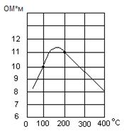 | Рис. 9.4. Зависимость удельного электросопротивления золы от температуры отходящих дымовых газов (для Кузнецкого угля Т) |