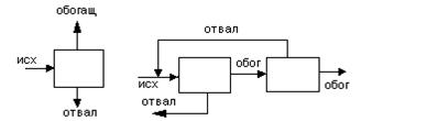 Противоточный каскад, когда отвал одной ступени – используется в предыдущей ступени (рис. 15.2 б).