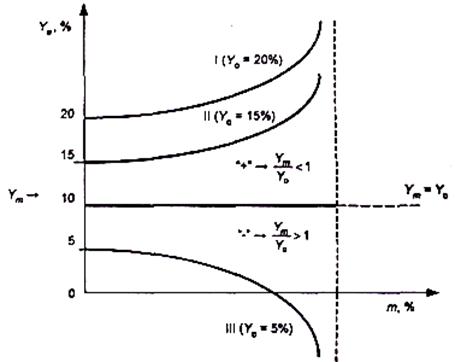 Приведенное выражение показывает, как изменяется норма отдачи на собственный капитал от доли задолженности т при определенных значениях Ym /Yo. Его графическая интерпретация представлена на рис. 8.1.