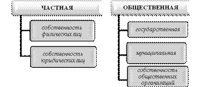 В зависимости о того, кто является собственником, в хозяйственной практике существует два типа собственности: