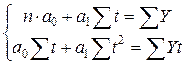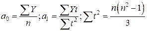 3) Метод аналитического выравнивания (количественная модель) – это метод получения сглаженной линии развития. Выравнивание заключается в подборе для данного ряда динамики теоретической кривой, наилучшим образом описывающей эмпирические данные ряда динамики. На языке математики и логики смысл этого приема заключается в том, что линия выравнивания (кривая или прямая) должна проходить в максимальной близости к фактическим уровням. Задача решается с помощью метода наименьших квадратов, то есть сумма квадратов отклонений между теоретическими (выровненными) и эмпирическими уровнями Y должна быть минимальной. При этом техника выравнивания следующая.