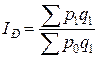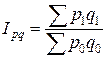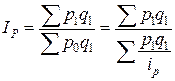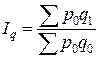 В приведенной формуле индексируемой величиной является количество продукции, а весом – базисная цена.