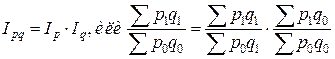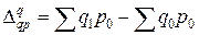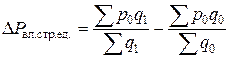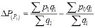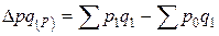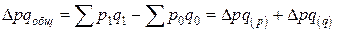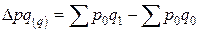 Абсолютное изменение физического объема продукции (т.е. на сколько денежных единиц (рублей) изменилась стоимость продукции в результате роста (уменьшения) ее физического объема q) вычисляется как разность между числителем и знаменателем формулы: