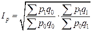 3) «Идеальный» индекс цен Фишера представляет собой среднюю геометрическую из произведения двух агрегатных индексов цен Ласпейреса и Пааше: