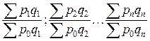 Умножением количества произведенной продукции на цену дает стоимостное выражение продукции каждого вида, которое можно суммировать. Формула данного индекса имеет вид