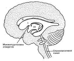 3. IV желудочек, кроме третьего, сообщается благодаря боковым и медиальному отверстиям с подпаутинным пространством головного мозга и с центральным каналом спинного мозга. Заращение этих отверстий ведет к накоплению жидкости в подпаутинном пространстве – водянке головного мозга.