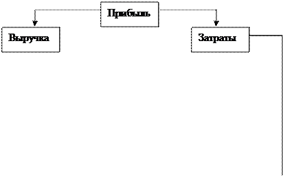 Начальным этапом структурного моделирования является построение информационной модели. Например, при прогнозировании развития предприятия основным плановым показателем является прибыль, и соответственно, укрупненная информационная модель может иметь вид представленный на рисунке 6.