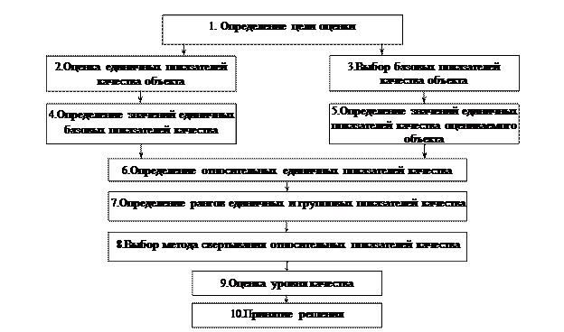 Поскольку оценка уровня качества представляет собой совокупность мероприятий, связанных с определением значения уровня качества объектов, оценка качества может рассматриваться как особая функция управления, направленная на формирование ценностных суждений об объекте. На рис. 3 представлена схема последовательности мероприятий при комплексной оценке уровня качества.