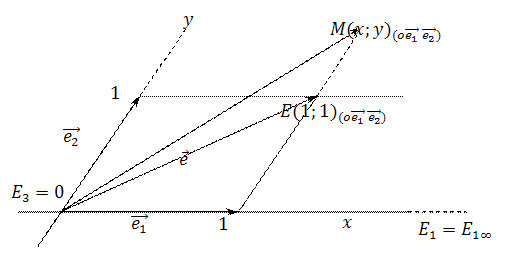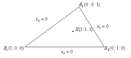 Следствие 1: координатные прямые Е1Е2, Е1Е3 и Е2Е3 имеют соответственно уравнения: х3=0, х2=0, х1=0.