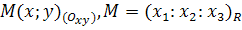 Определение 2. Проективными координатами точки M проективной плоскости Ф 2 в системе координат
