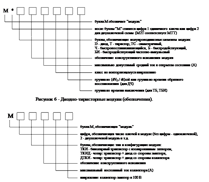 В области коммутируемых токов более 50 А основными приборами силовой электроники являются: силовые модули на базе биполярных транзисторов; силовые модули (IGВТ); тиристоры; запираемые тиристоры (GTO); диоды.