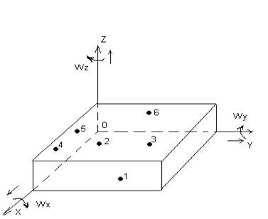 Любое твердое тело имеет 6-ть степеней свободы: перемещение в направлении 3-х координатных осей x,y,z и вращение (поворот) относительно этих же осей Wx (омега), Wy, Wz.