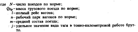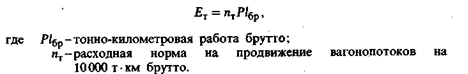 На каждую принятую единицу работы: 10000 т-км брутто; 100 локомотиво-км на продвижение самого локомотива; 100 локомотиво-км. одиночного следования локомотивов; 1 локомотиво-ч рассчитывается нормативный расход топлива или электроэнергии.