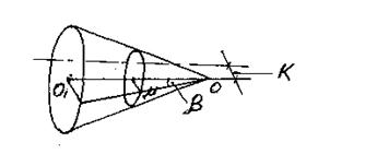 h - расстояние по оси шарошки от венца (точка М) до вершины конуса шарошки (точка 0);