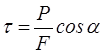 Получив величину нагрузки Р, при которой образец разрушается по плоскости среза, определяют нормальное напряжение по этой плоскости по формуле: