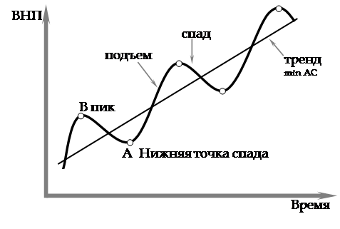 Рис. 8.2. Экономический цикл: А – точка максимального спада;