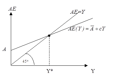 Рисунок 9.2.. Равновесие в модели Кейнсианского креста