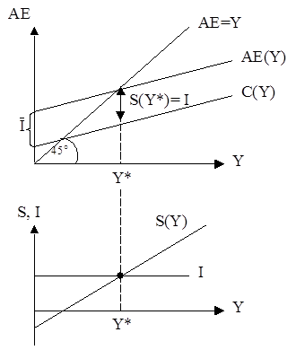 Рис. 9.3.Равновесие с учетом инвестиций и сбережений