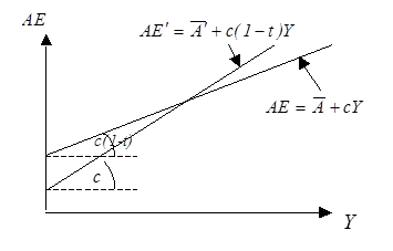 Таким образом, кривая совокупного спроса будет более пологой, чем в случае экономики без государства, то есть при t =0 (смотри рисунок 9.4.).