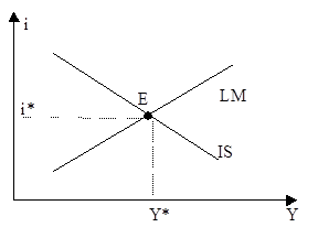 Чтобы равновесие достигалось одновременно на товарном и денежном рынках оба условия должны быть удовлетворены, т.е. равновесие в экономике достигается в точке пересечения кривых IS и LM.