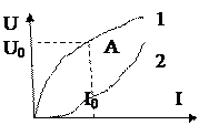 Нелинейным элементом электрической цепи постоянного тока является такой, у которого отсутствует линейная связь между током и напряжением (рис. 7) и поэтому он определяется вольтамперной характеристикой (1 и 2), которая связывает ток и напряжение данного элемента.