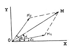 Сумма двух синусоидальных величин изображается суммой векторов, изображающих отдельные слагаемые, а линейная комбинация нескольких синусоидальных величин – соответствующей линейной комбинацией векторов. Такое изображение синусоидальных величин называется векторной диаграммой. При построении векторных диаграмм один из векторов – исходный располагают произвольно, другие векторы – под соответствующими углами к исходному.