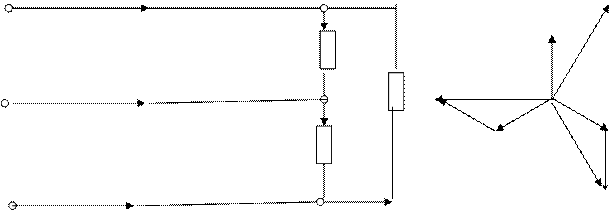 Из векторной диаграммы следует, что при симметричном приемнике, соединенном в «звезду», и при наличии нулевого (нейтрального) провода, симметричной системе напряжений соответствует симметричная система токов